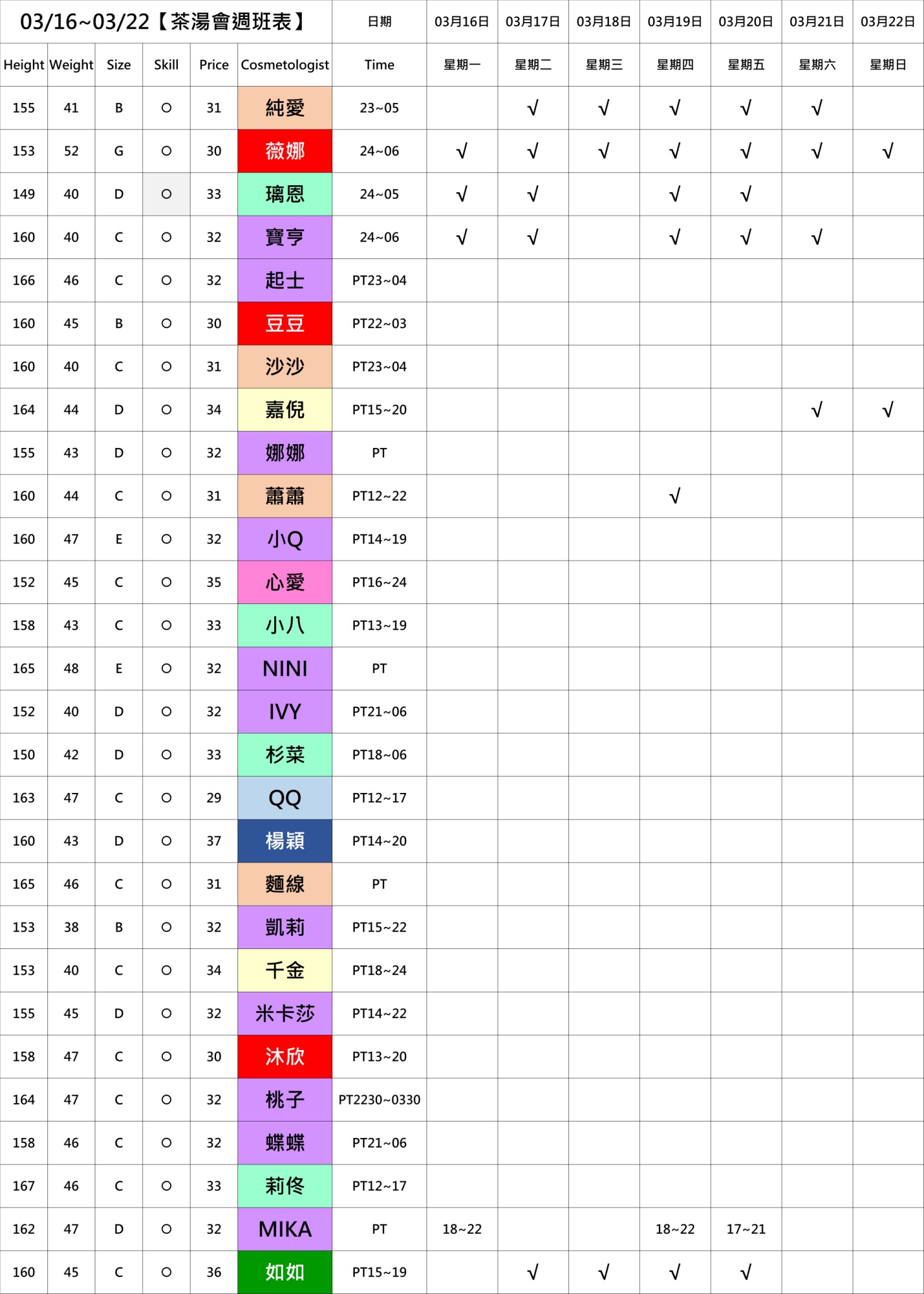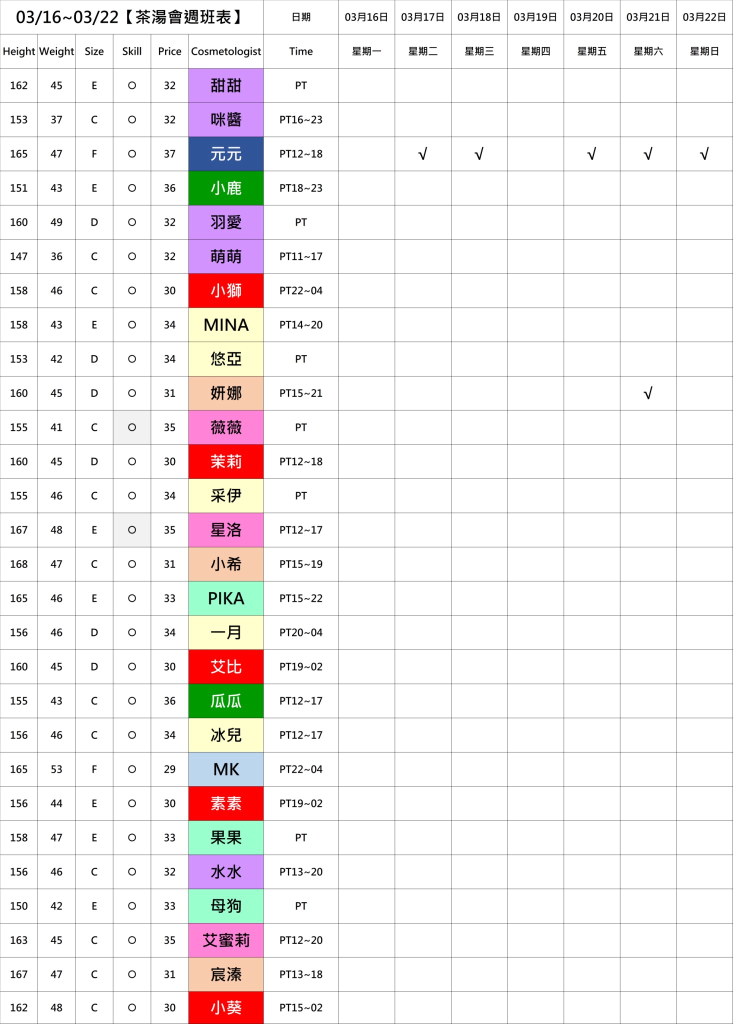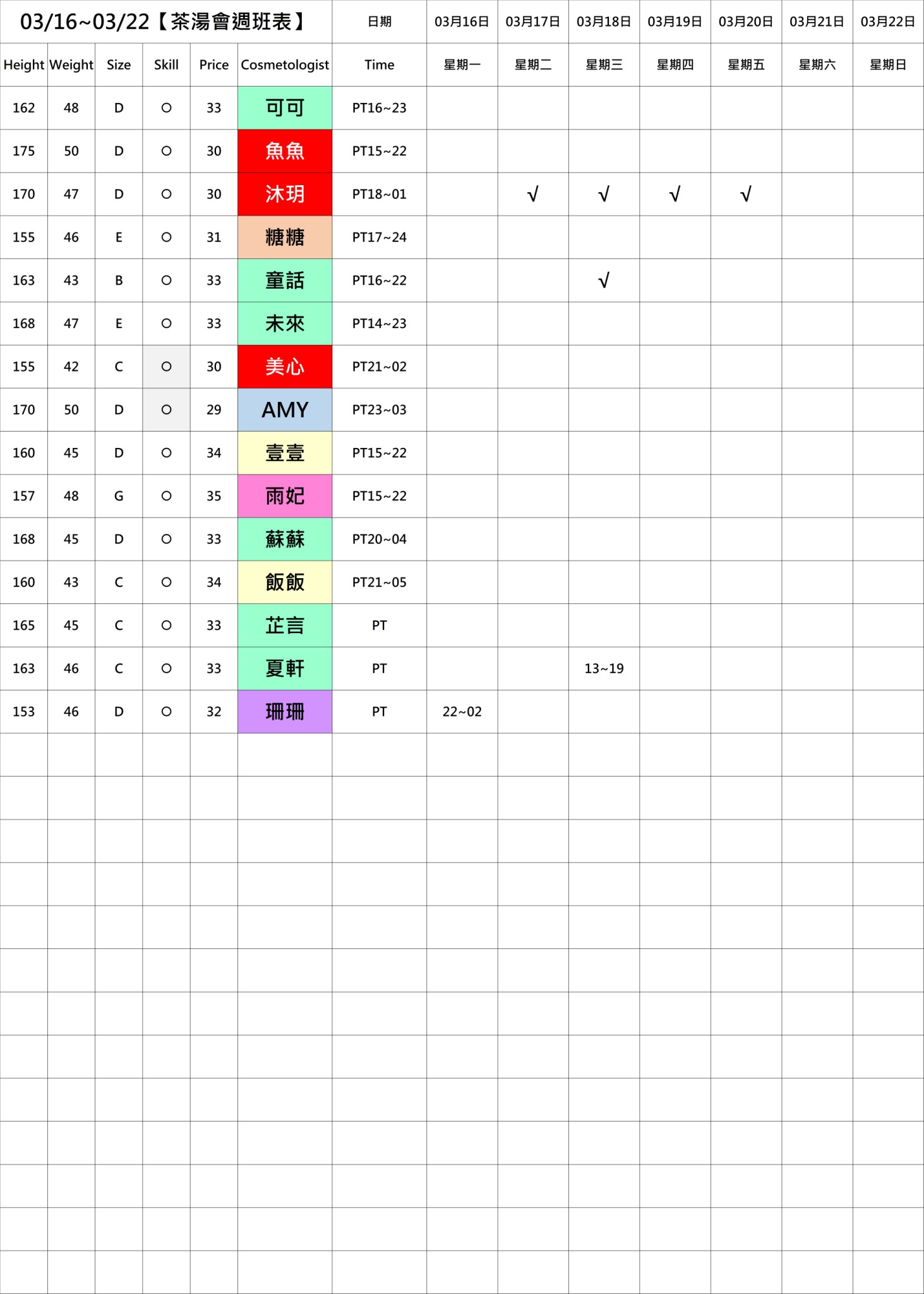 若PT有報班也有時間,代表當週美容師願意給出時間