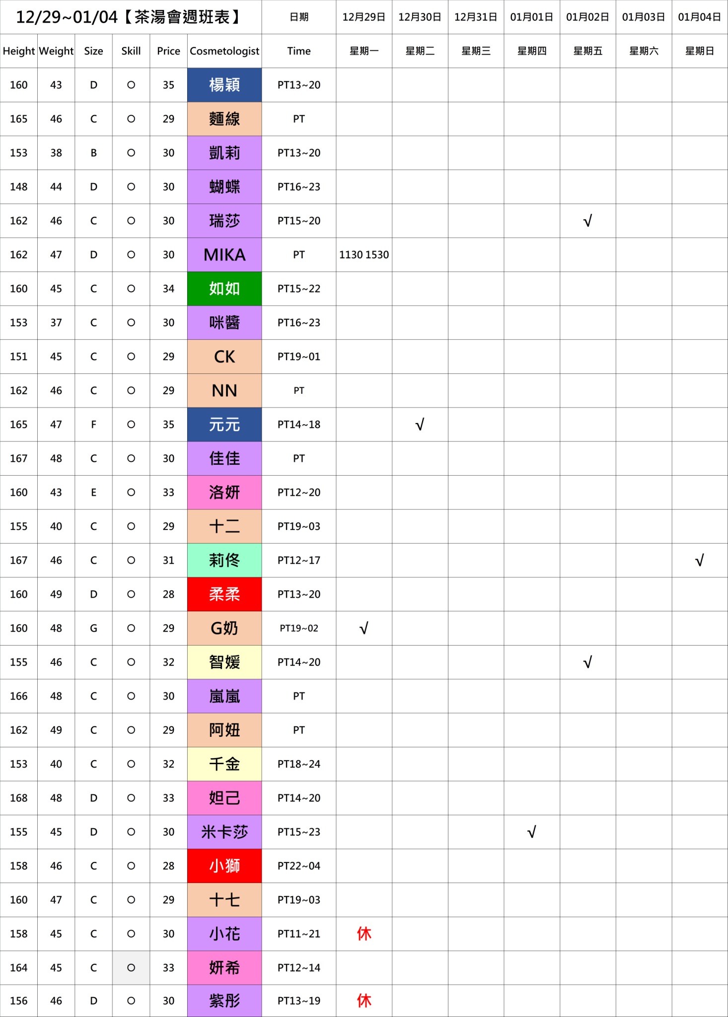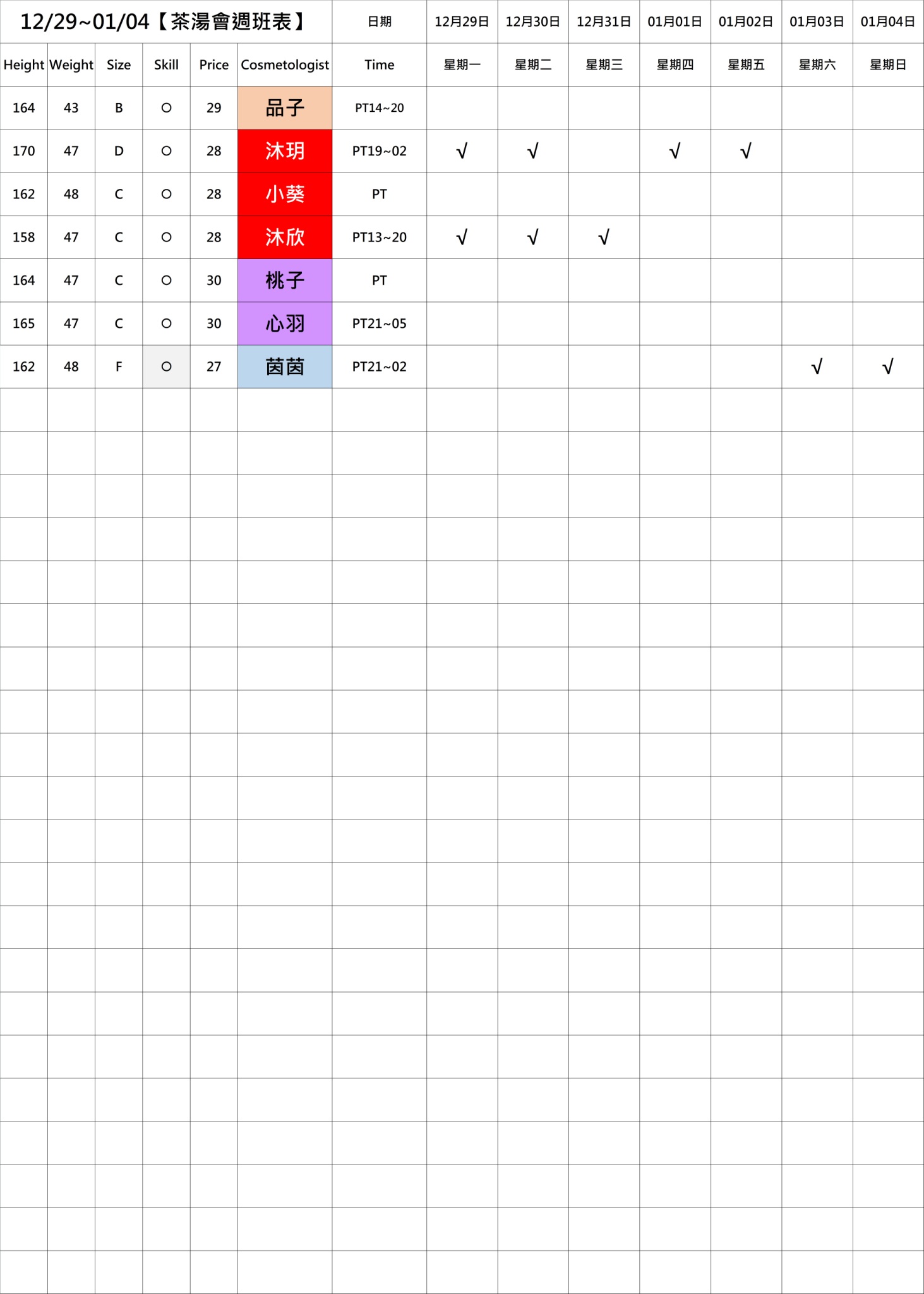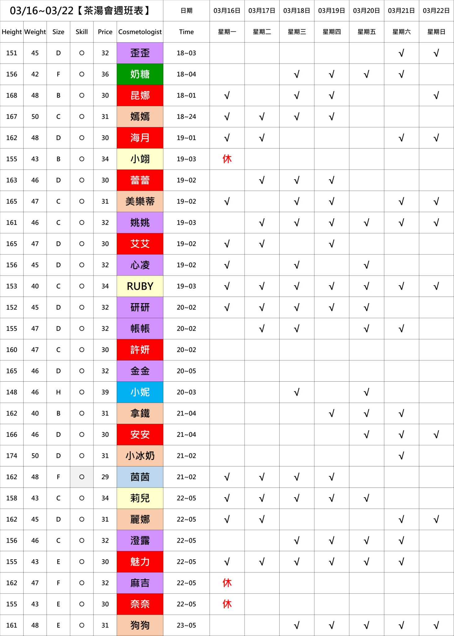 若PT有報班也有時間,代表當週美容師願意給出時間