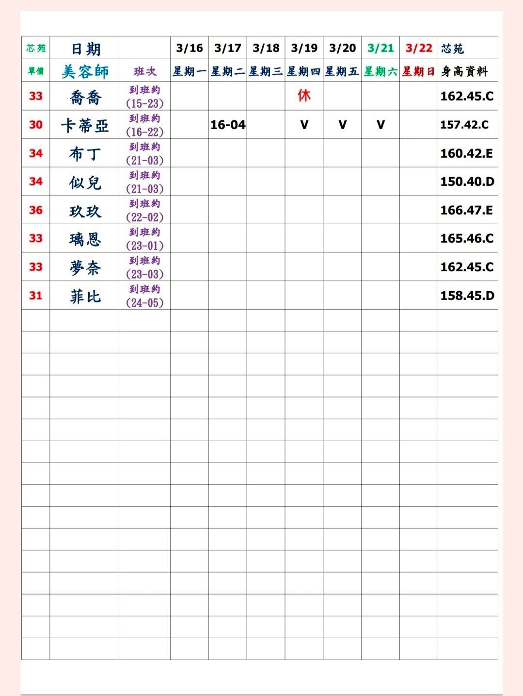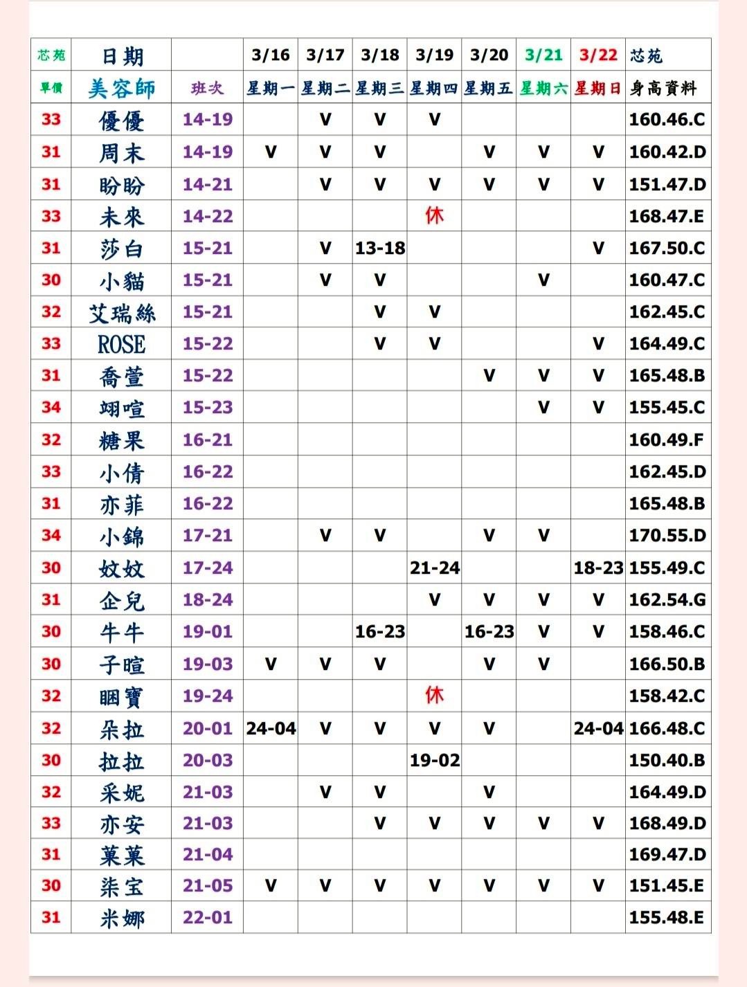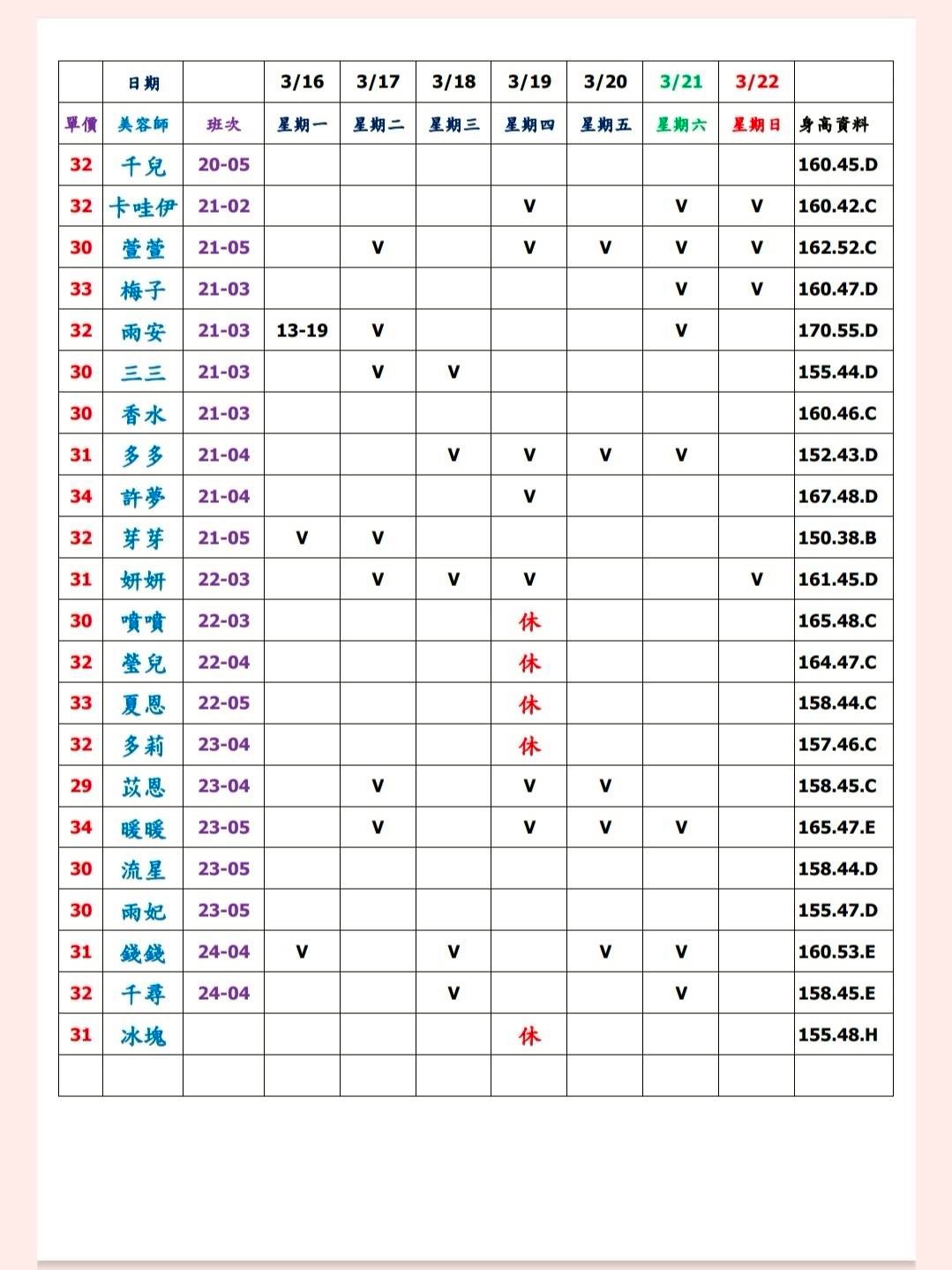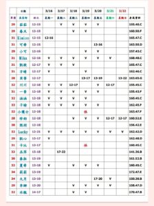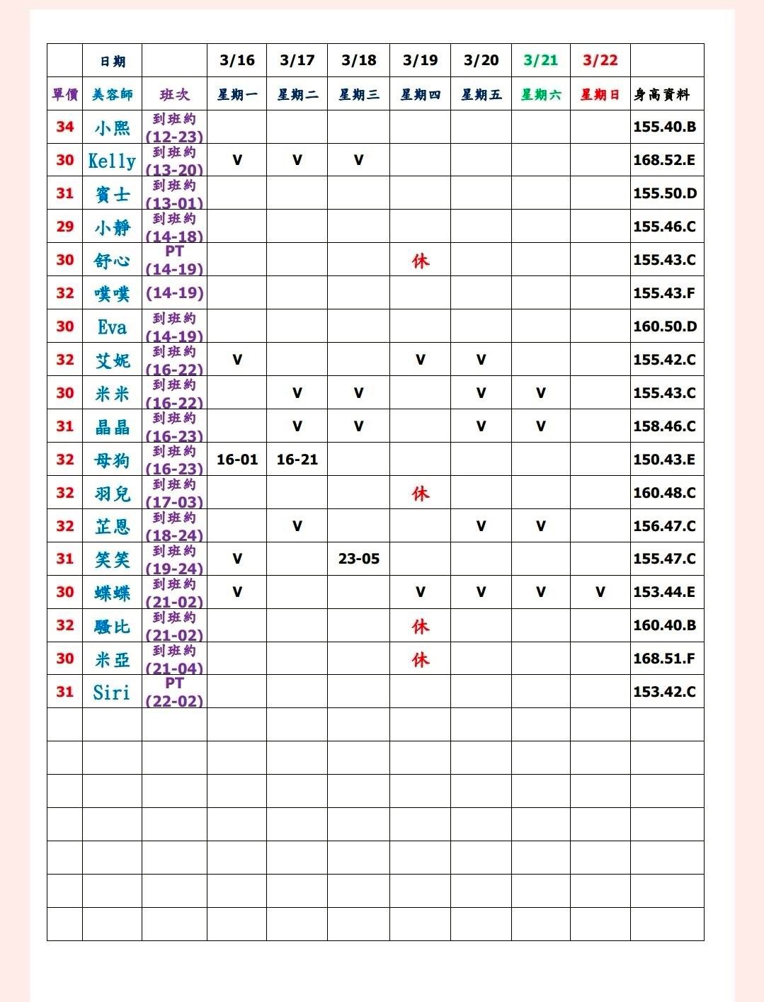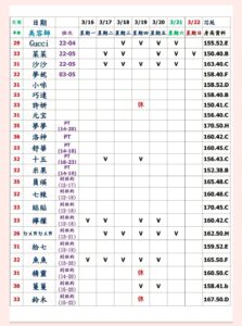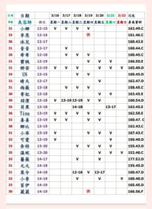 有打勾即報班,若是寫時段,代表當日為該上班時段