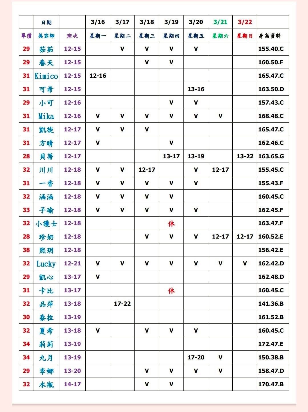 - 美容師數量與其他店家相比算少量,因此要搶要快阿!