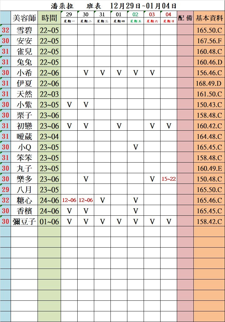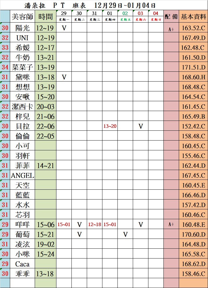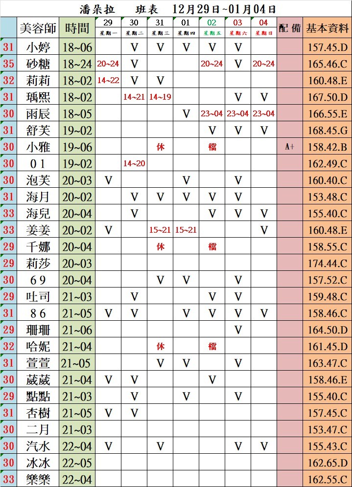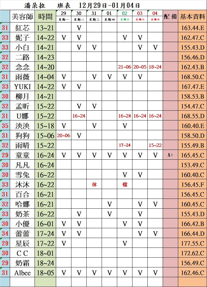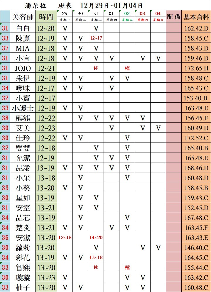 潘朵拉館美容師列表