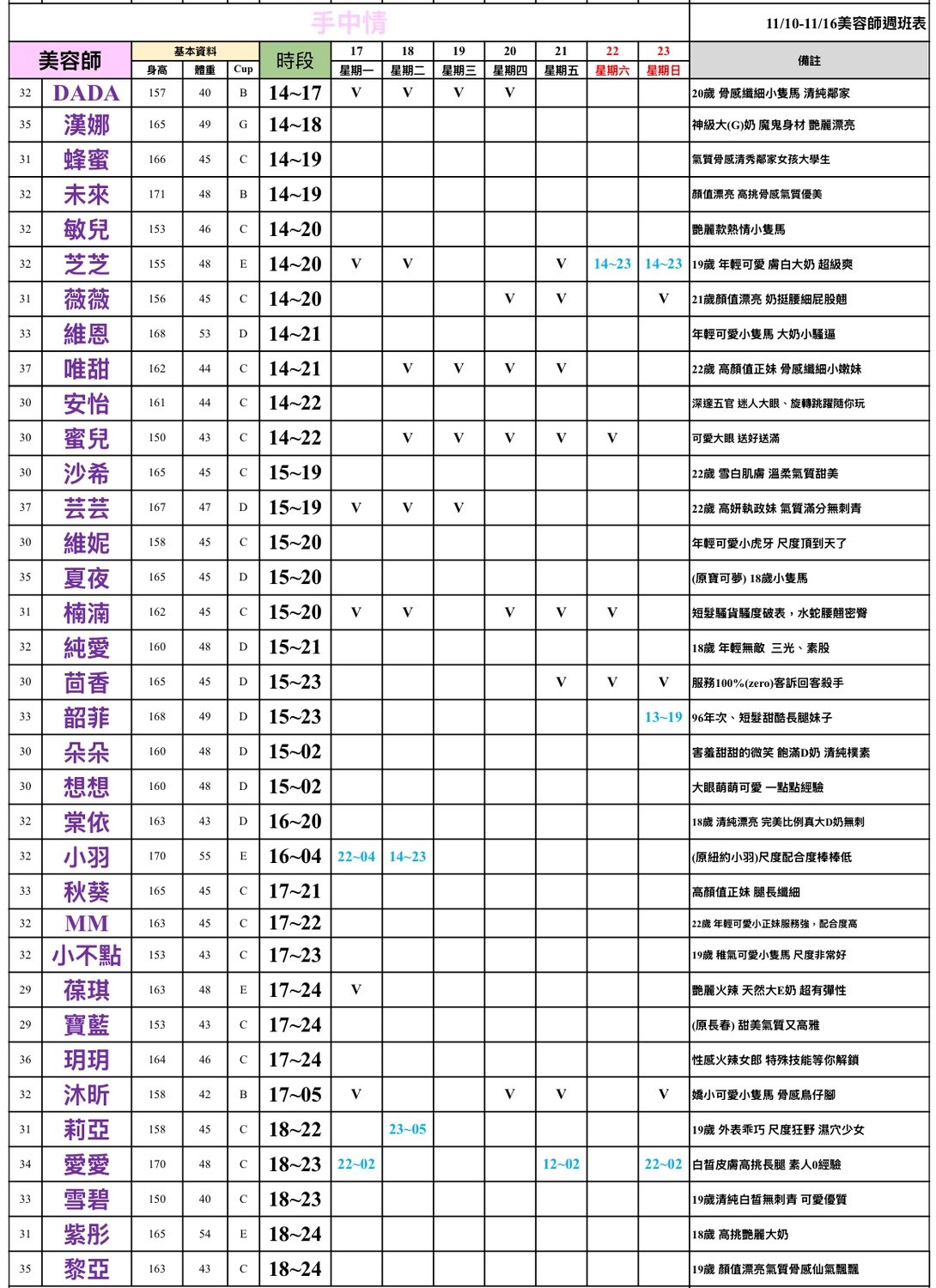 營業時間:PM12:00 ~ AM06:00(AM05:00最後收客)星期日為美容師最少的日子!