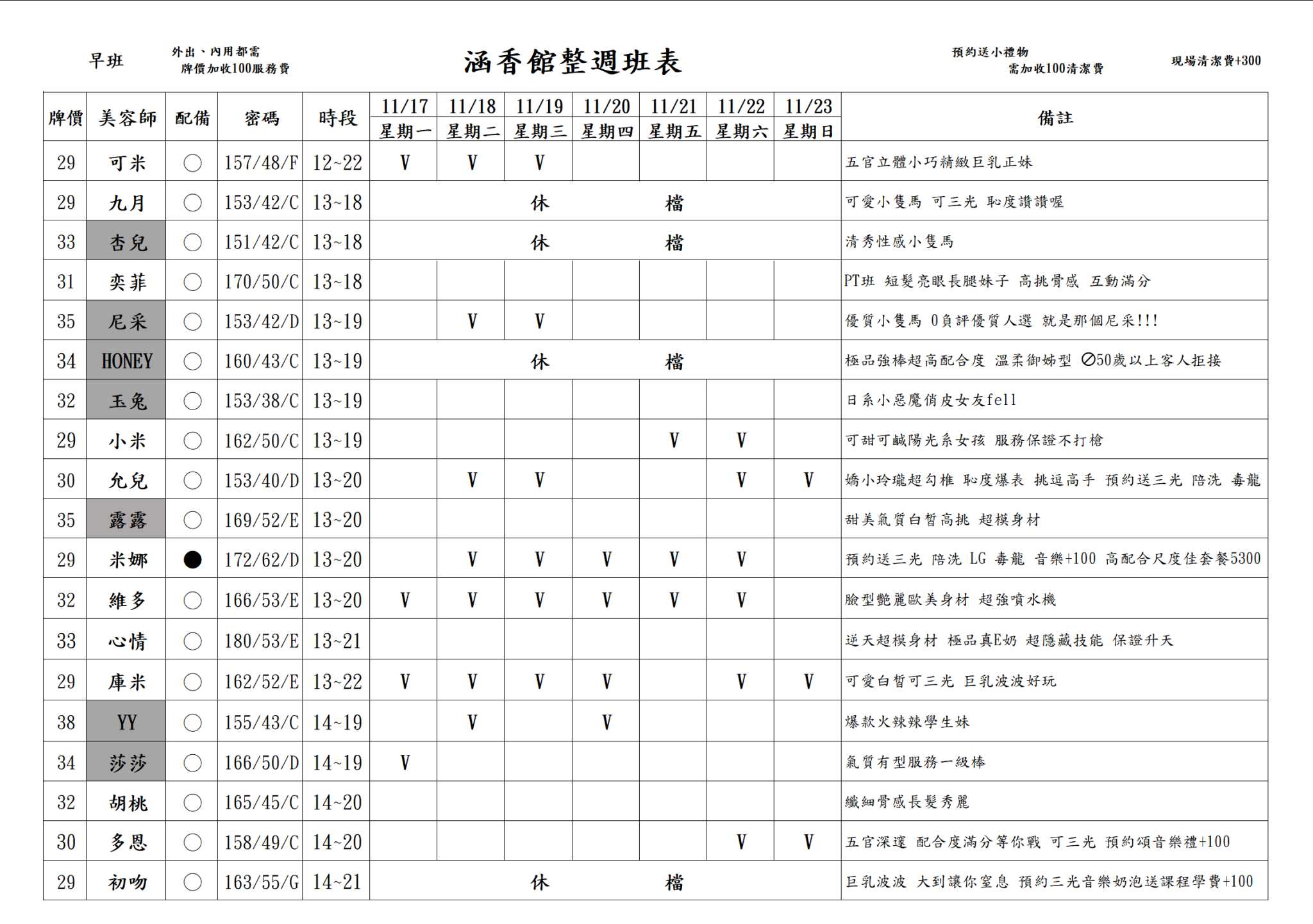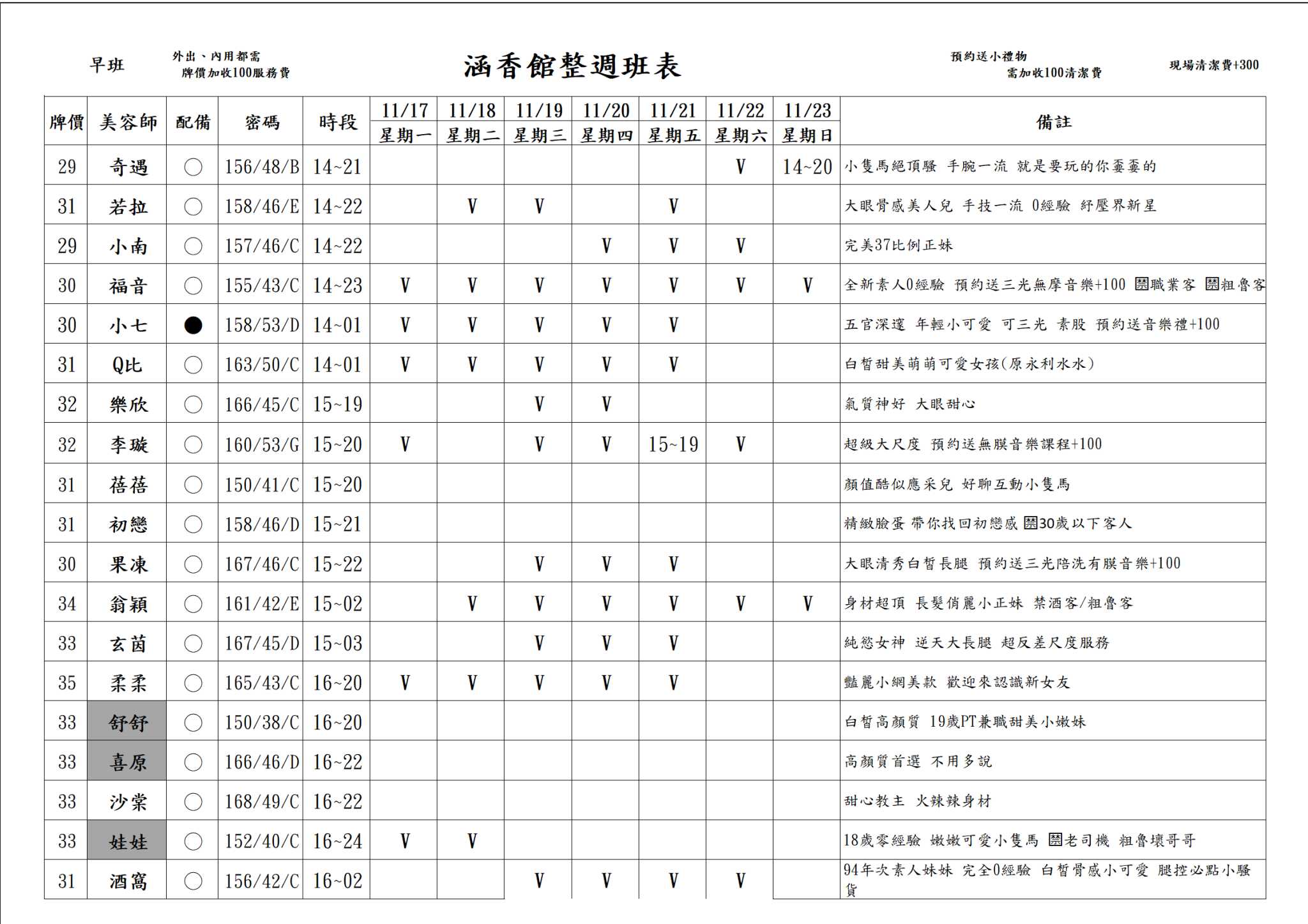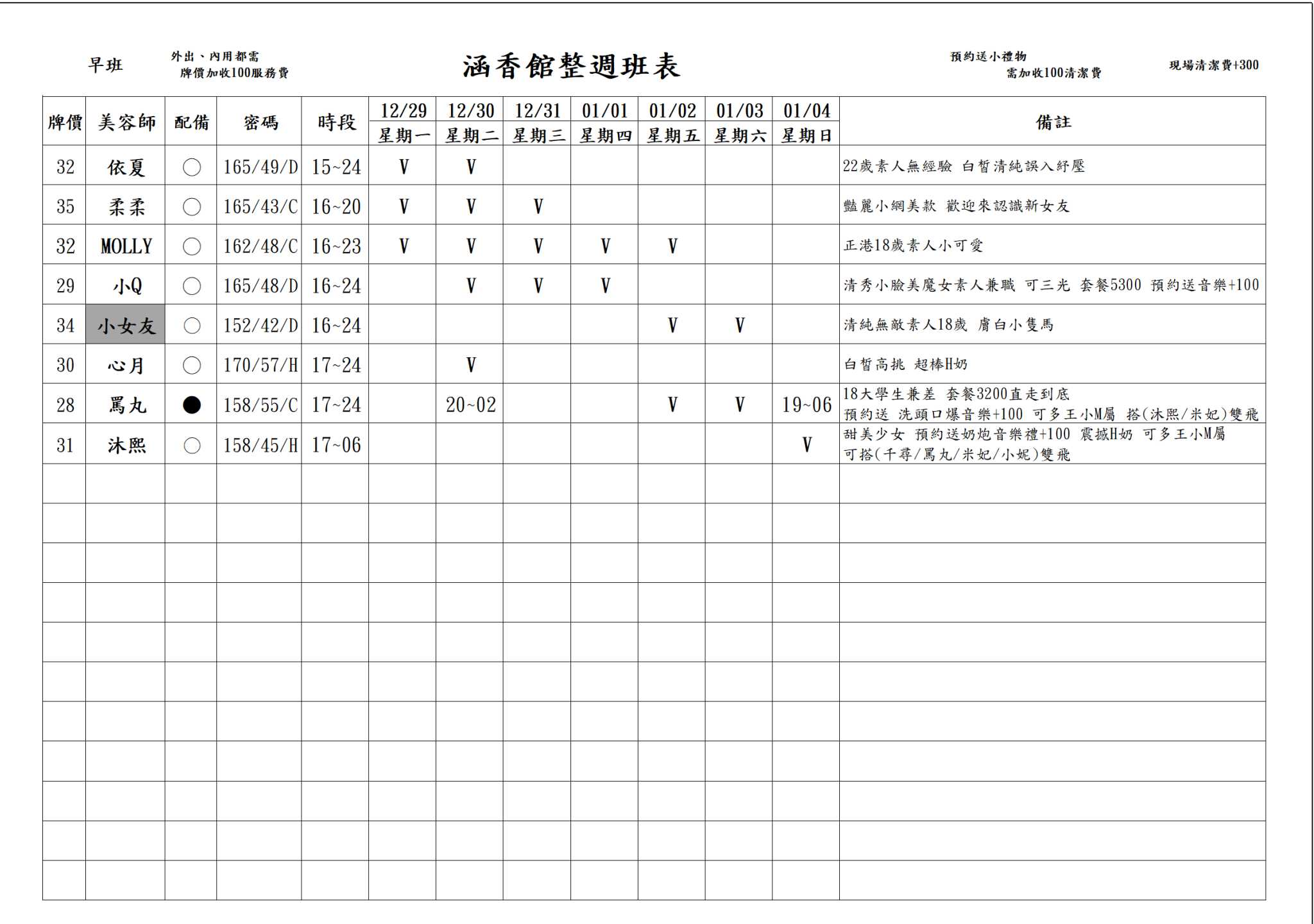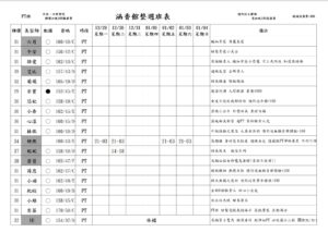 有打勾即報班,若是寫時段,代表當日為該上班時段