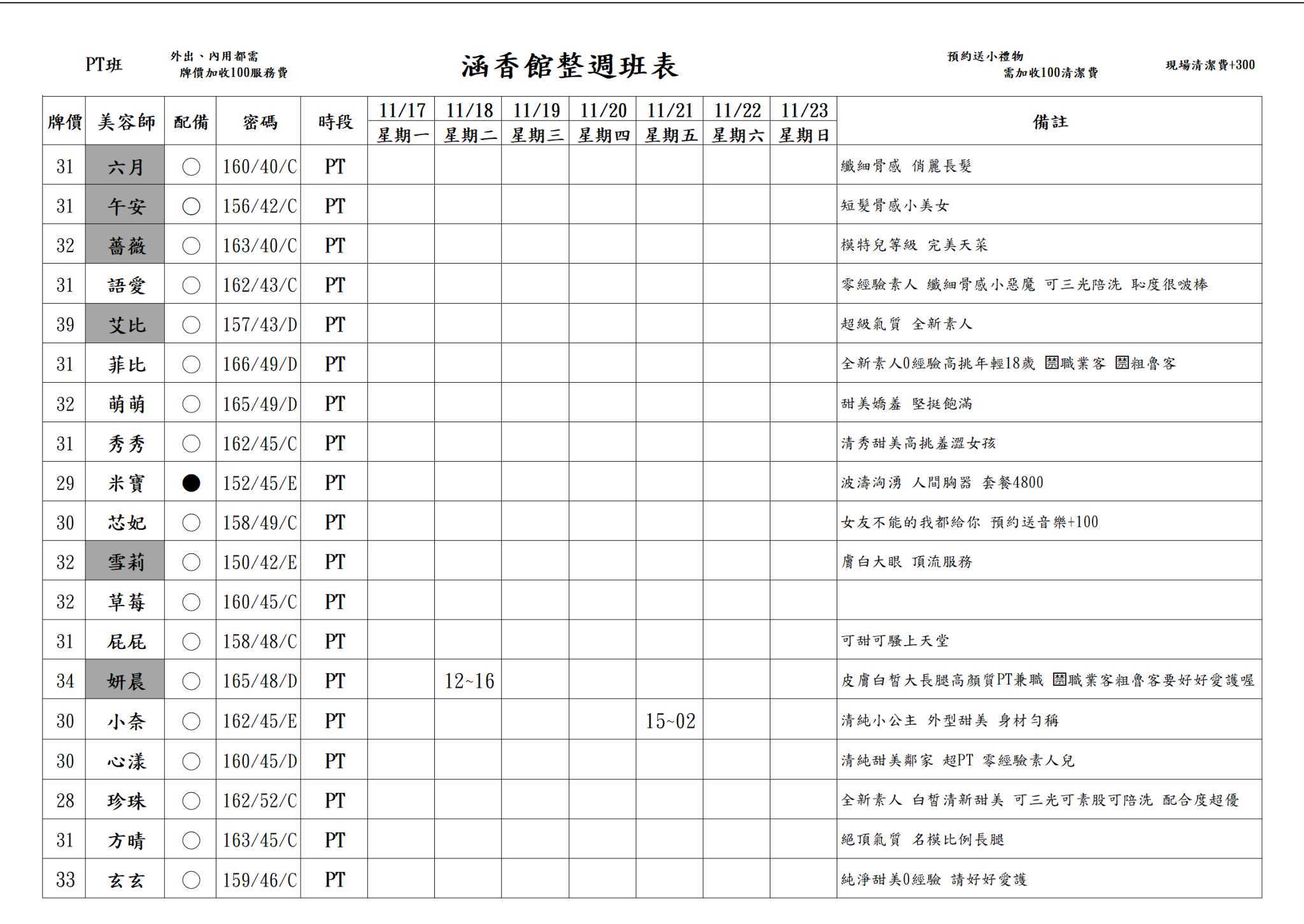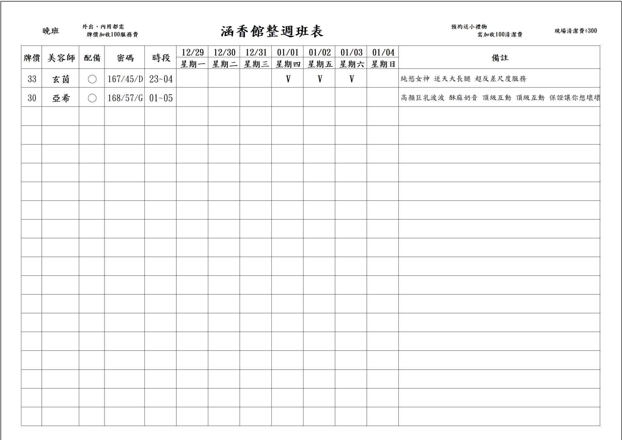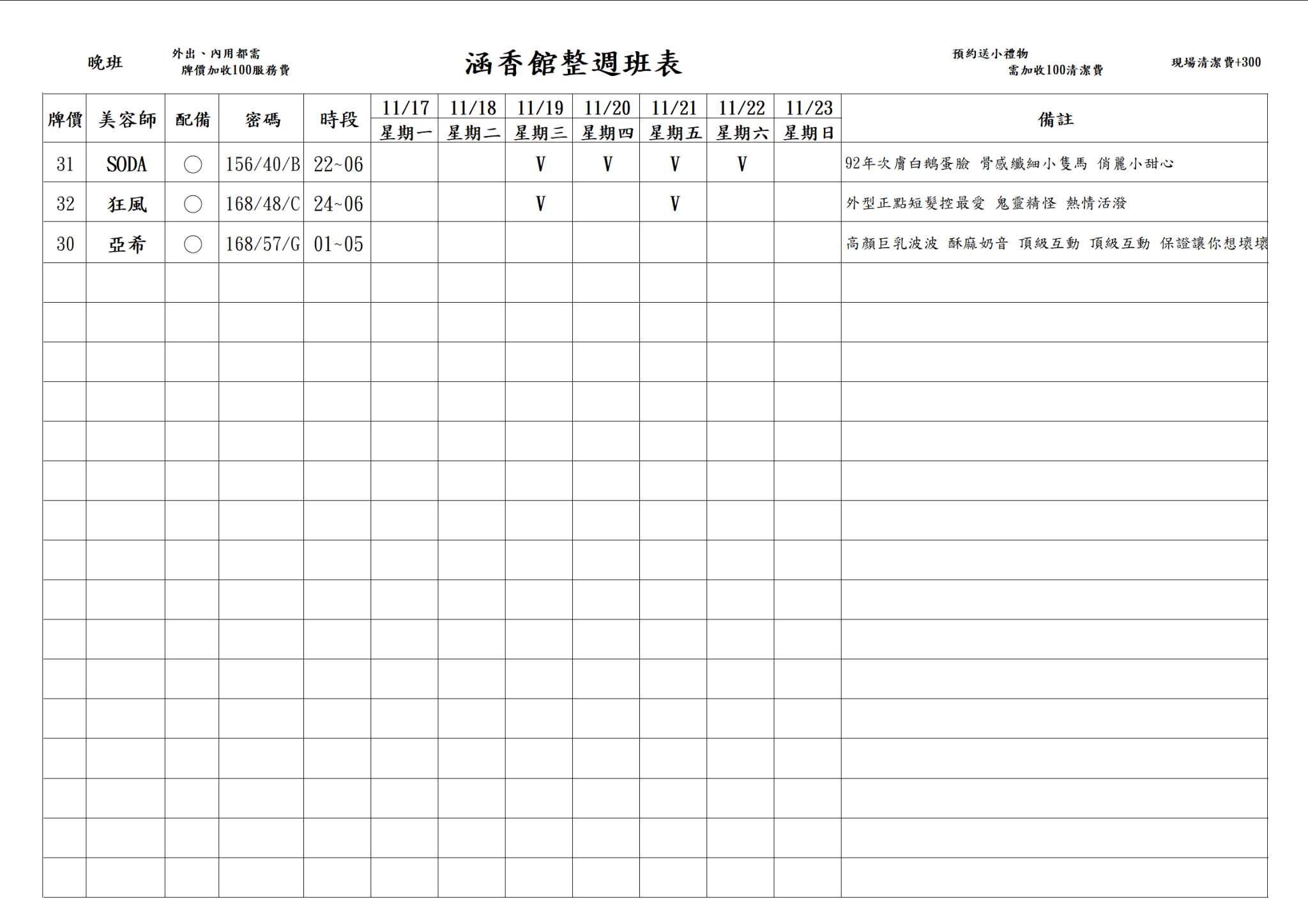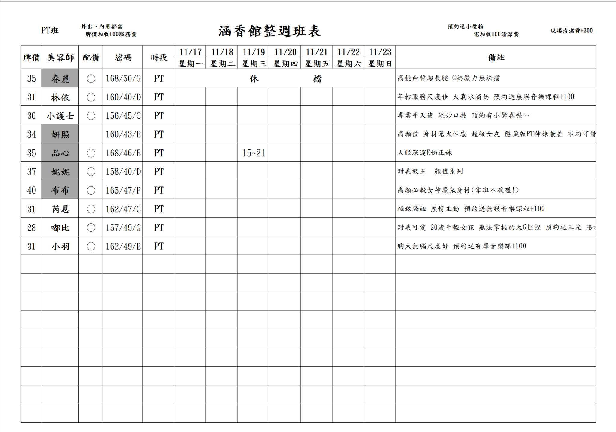 有打勾即報班,若是寫時段,代表當日為該上班時段